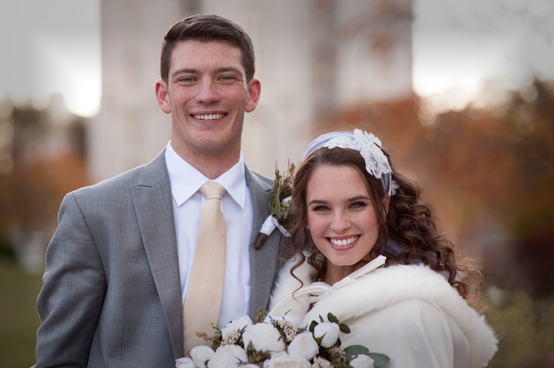 Fall wedding at Salt Lake temple